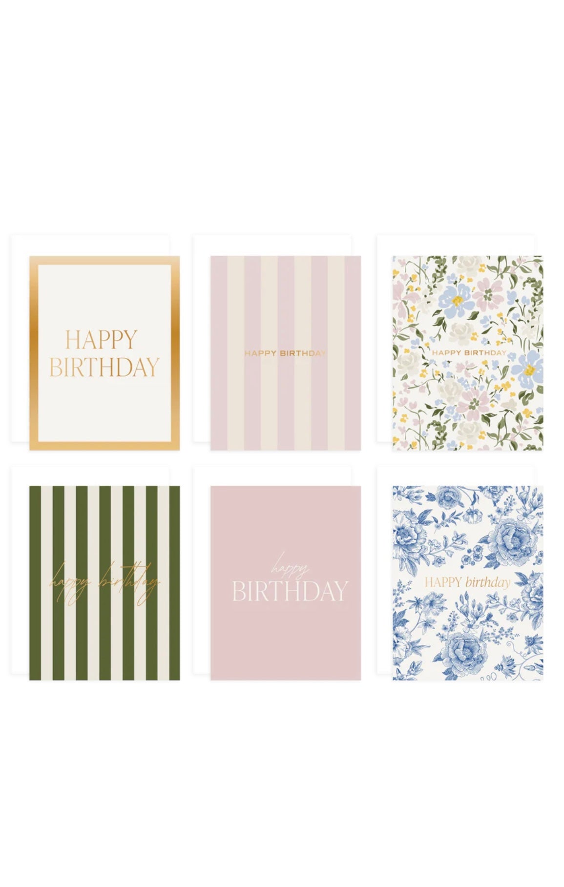 Celebrate in style with our Boxed Happy Birthday Card Set, featuring six timeless designs (two of each).